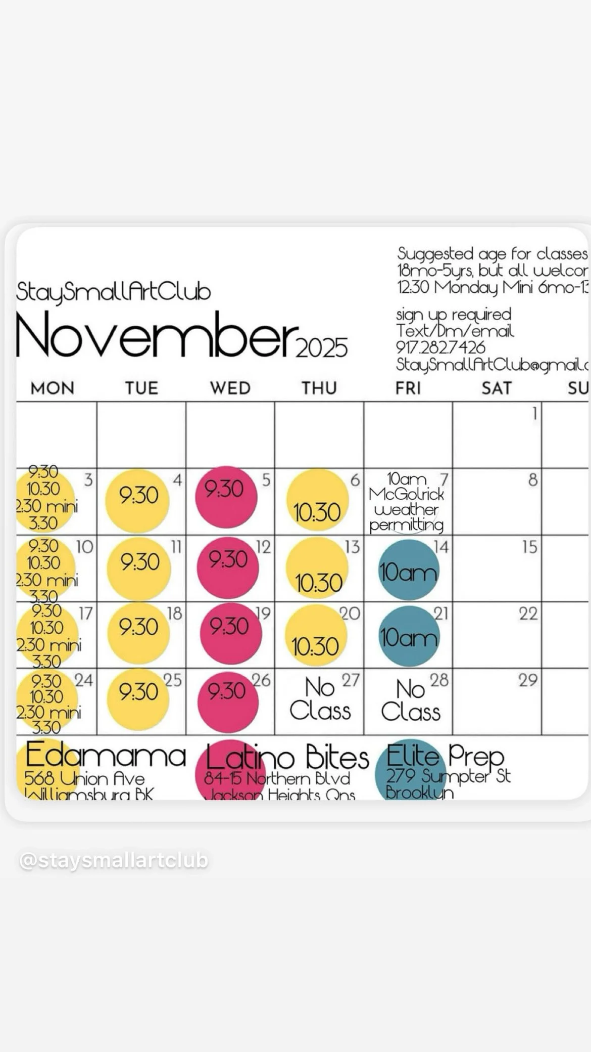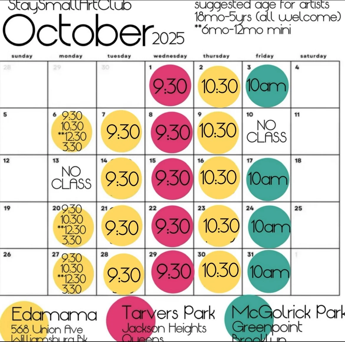 All classes require sign up. Please email day/time/location to save your artists spot.